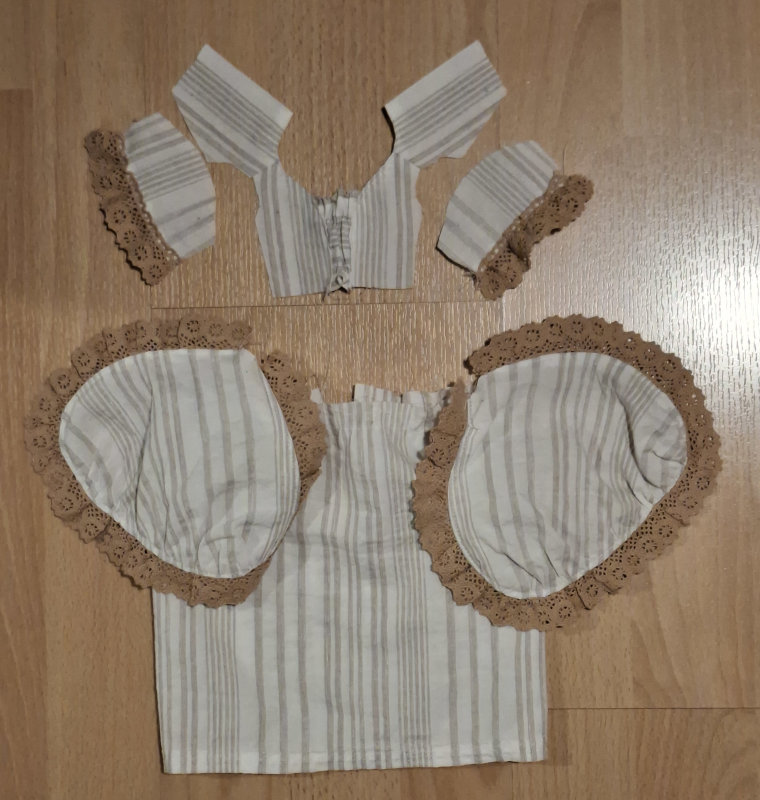 Wie man unschwer erkennt, bin ich wieder beim Restevernähen. Prinzessin Barbie ist wieder dran, diesmal allerdings in einem rustikal ländlichen Stil. Farblich natürlich ungewöhnlich, aber thematisch nicht so unpassend, denn im Barock und noch mehr Rokoko liebte es der Adel, Schäferidyll bei Picknicks im Park nachzuspielen. Wenn sie das heute noch machen würden, hätte sich Barbie sicher natürliche Farben ausgesucht. 😉
