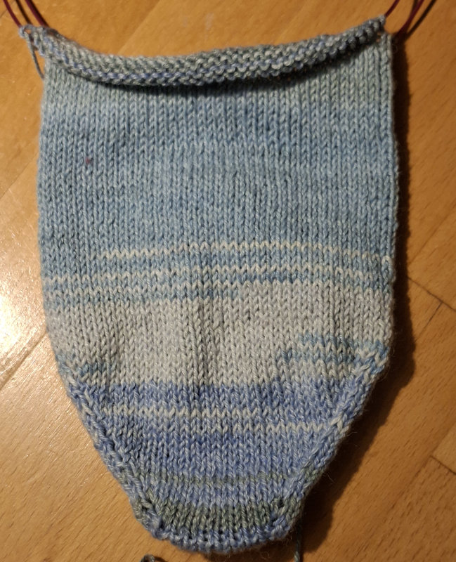 Da es Sommersocken sind, werden das Sneakersocken. Auf ein Muster habe ich auch verzichtet, das erhöht die Chance, dass sie fertig werden. (Ich habe seinen Geburtstag plus ein paar Tage…)