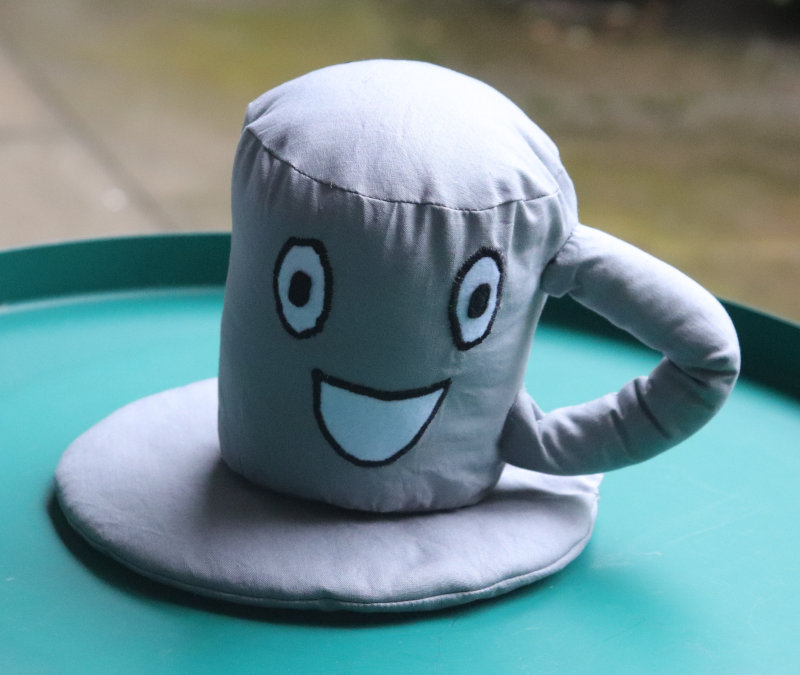 Die Reste vom Probekleid im letzten Sommer wurde noch mal eine Tasse aus dem Aranzi Aronzo Buch. Diesmal mit einem anderen Gesichtsausdruck. Und aus wesentlich wilderem Stoff.